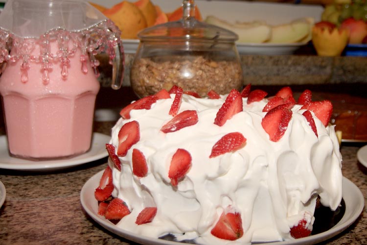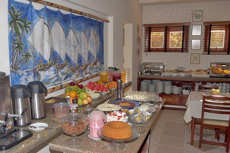 Café colonial servido no ambiente aconchegante do restaurante, em estilo self-service, entre 8:00hs e 10:30hs. Selecionadas frutas de época, sucos naturais, pães e bolos elaborados artesanalmente, frios, café, leite, chás, achocolatados, geléias e outras delícias, fazem parte do desjejum carinhosamente para você e sua família.