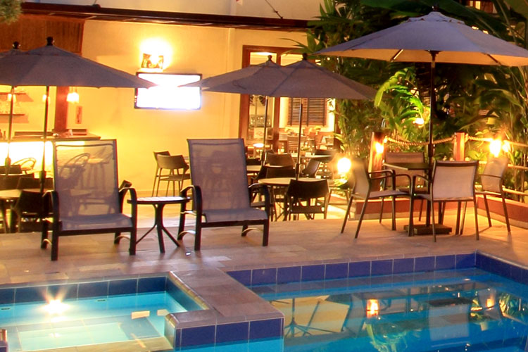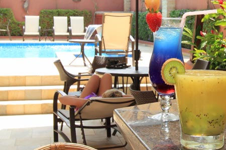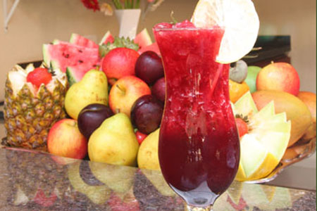 Sucos de frutas seletas e drinks criativos são servidos em nosso bar, restaurante e piscina.